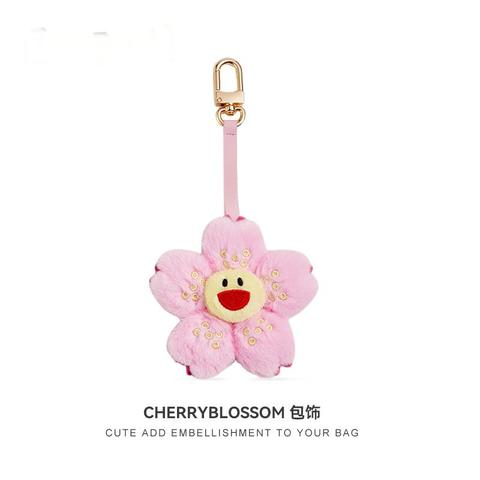 Abalorio de bolso de flores de felpa Sakura con cierre de langosta, bonito colgante de llavero para monedero/mochila, accesorio de juguete suave