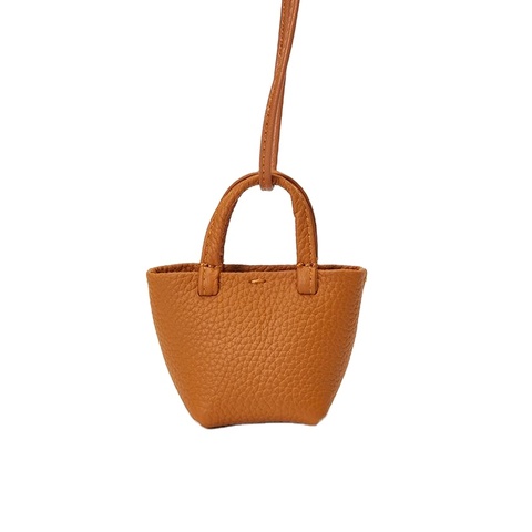 Top-Grain Cowhide Mini Tote Leather Earbud Pouch Bag Charm 29 cm Accesorio para monedero/mochila con correa de bucle y cierre abierto