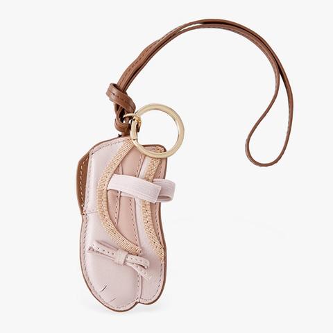 Abalorio de cuero para bolso con forma de zapato, llavero de bucle y correa de piel de vaca genuina con anillo de metal, longitud total de 33 cm, monedero/mochila