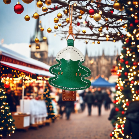 Bolso de árbol de Navidad de cuero de vaca de grano superior Charm 25,5 cm Longitud total con correa de bucle Accesorios de bricolaje Accesorio de regalo