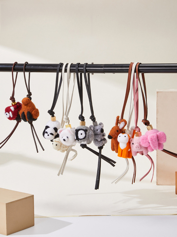 Abalorio de bolso de animal de fieltro de lana hecho a mano, Koala/Panda/gato/cerdo, colgante de llavero con correa de PU para monedero/mochila, MOQ bajo, RTS