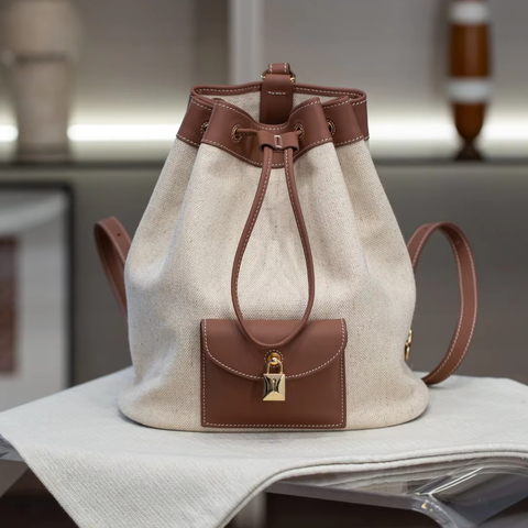 Mochila con cordón de cuero de vaca de lujo para mujer, Bolso tipo cubo de doble hombro con gran capacidad para el verano